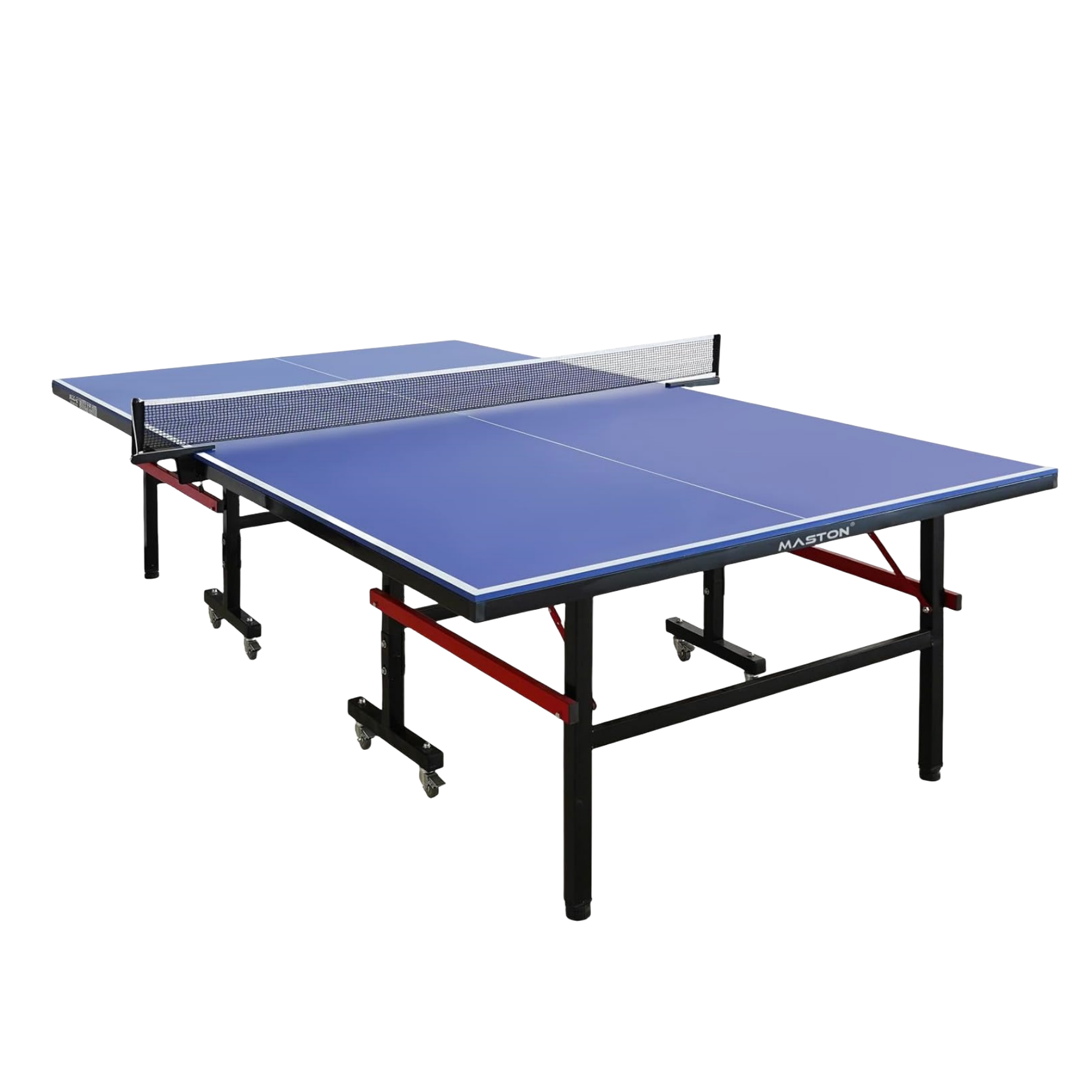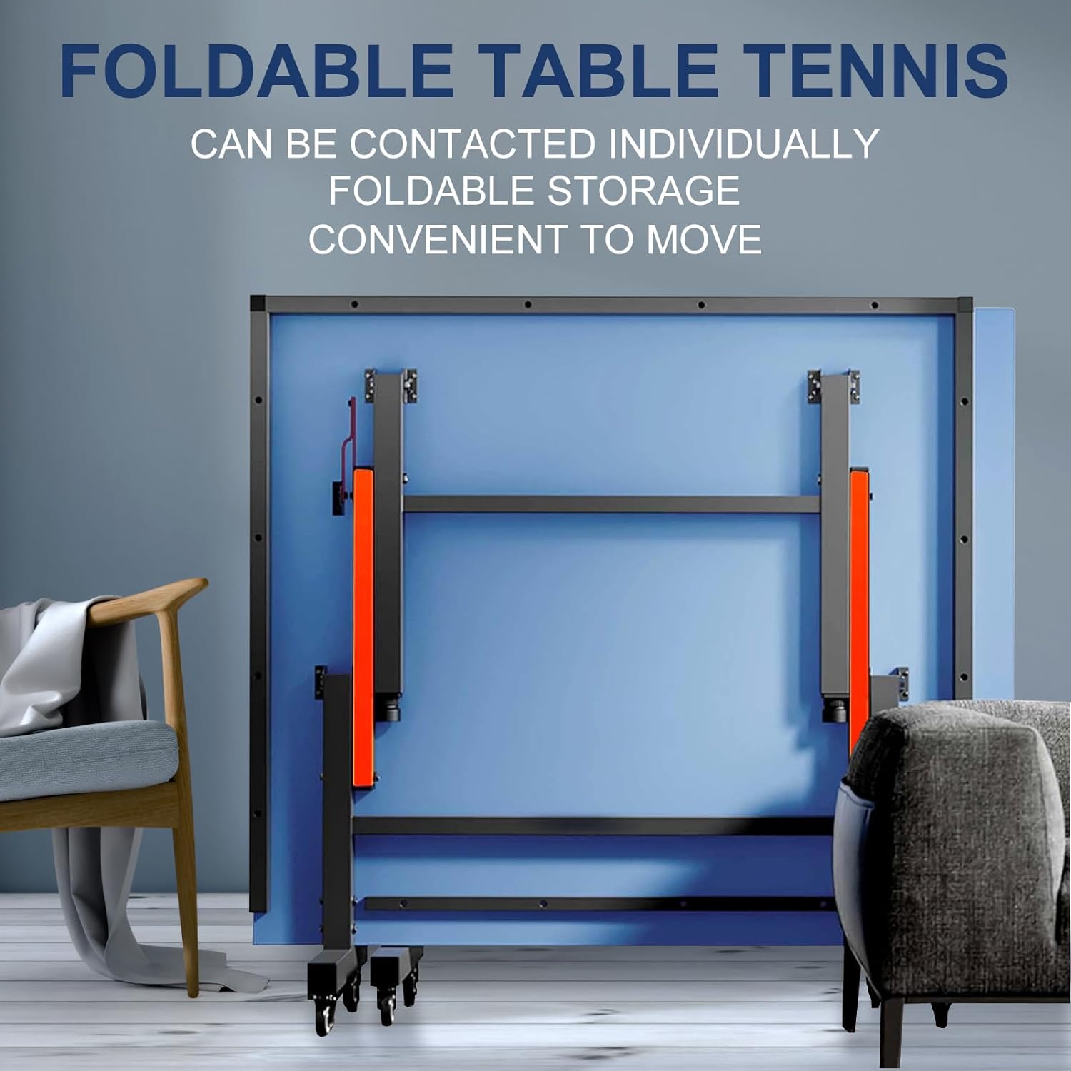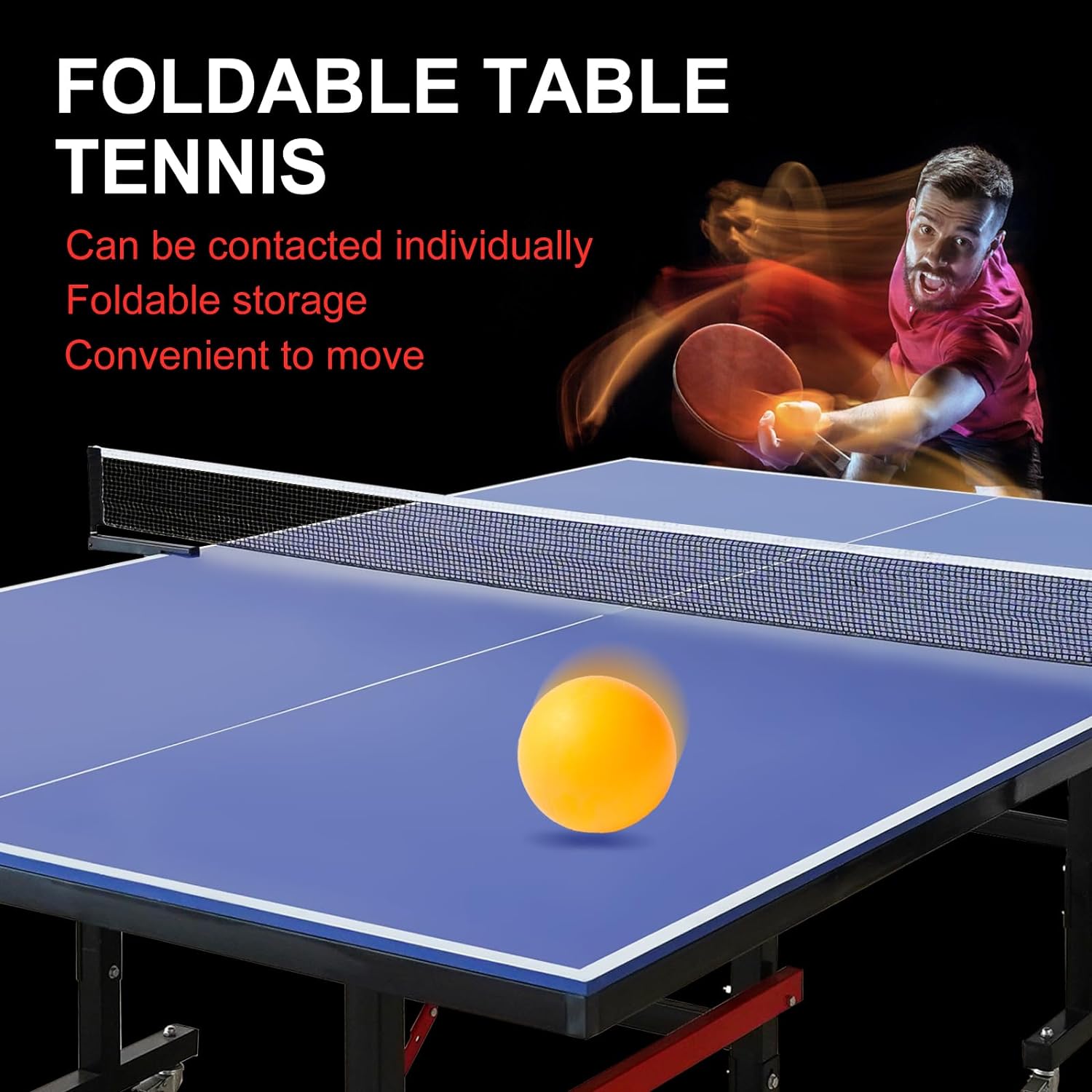 - The table's inner legs are equipped with moving wheels, and the outer legs are equipped with height adjustment and can be moved individually or when nested together. Use the automatic anti-tilt lock to easily unfold a table tennis table to achieve single-player mode.