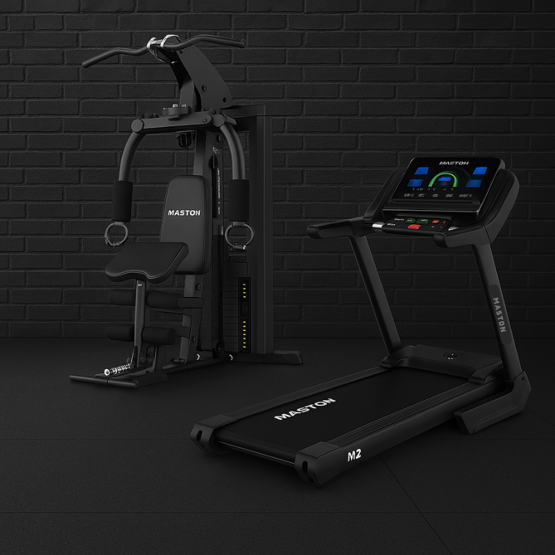 أنشئ صالة رياضية منزلية مثالية مع هذه المجموعة المميزة من ماستون، والتي تضم 3 أجهزة في جهاز واحد. تشمل المجموعة جهاز المشي B90 ، ودراجة التمارين K30 ، ومقعد رفع الأثقال القابل للتعديل ، مما يوفر لك حلاً متكاملاً لتمارين القلب والقوة وتدريب الجسم بالكامل.