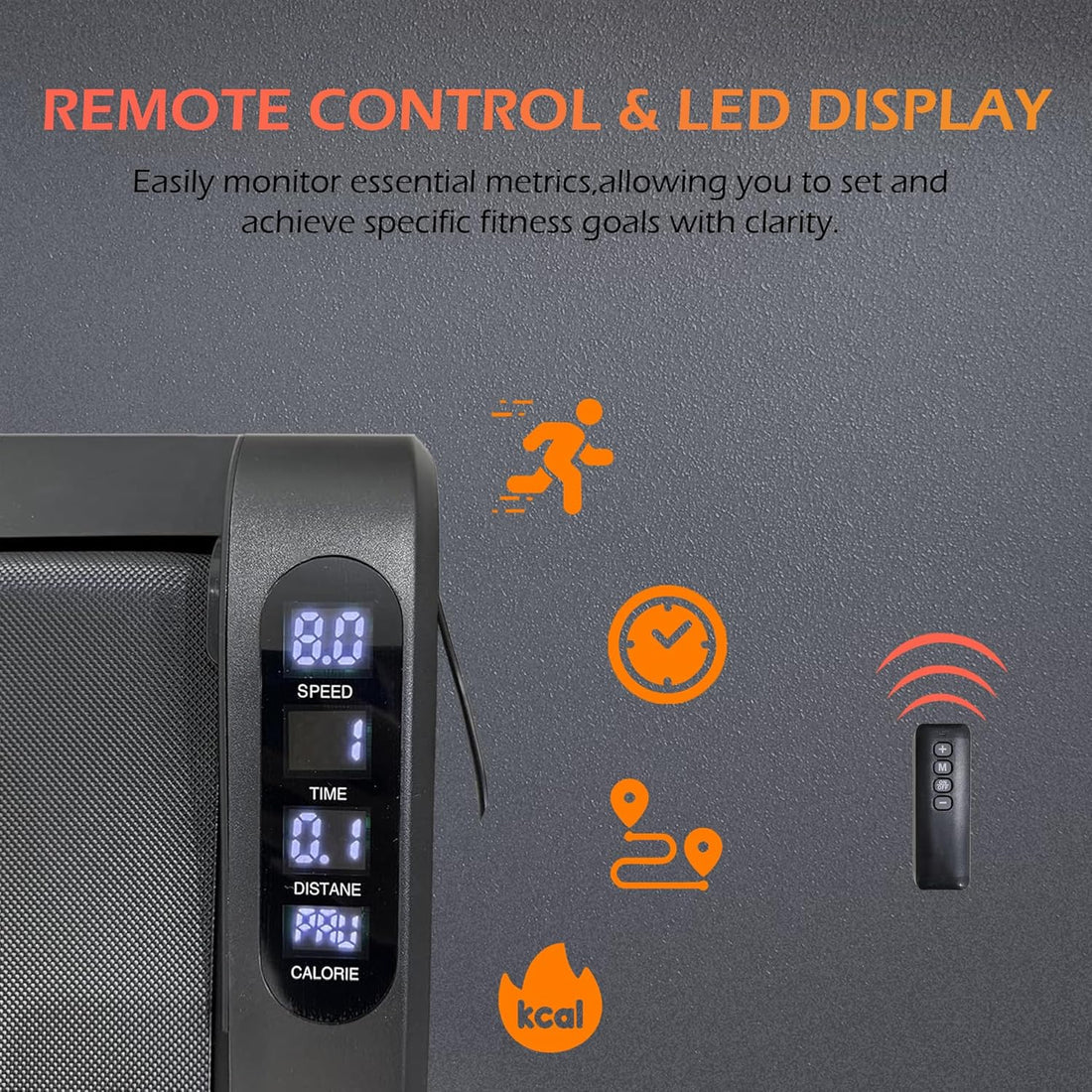 شاشة عرض LCD: تعرض الوقت والسرعة والمسافة والسعرات الحرارية. تتضمن جهاز تحكم عن بعد لضبط السرعة والتوقف.